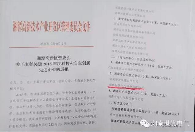 近日,湘潭高新區(qū)召開工委經(jīng)濟(jì)工作暨獎勵大會,世優(yōu)電氣作為高新區(qū)科技創(chuàng)新重點(diǎn)企業(yè),在此次表彰獎勵會上滿載而歸,憑借“湖南省企業(yè)技術(shù)中心”、“湘潭市財源建設(shè)先進(jìn)單位”、“湘潭高新區(qū)知識產(chǎn)權(quán)優(yōu)勢企業(yè)”3塊金字招牌捧多個獎項(xiàng)。